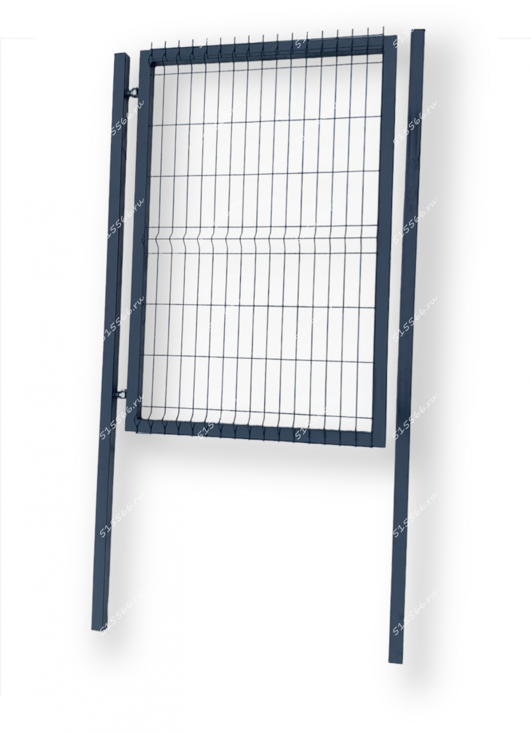 Рама - труба 40*60*1,5мм, поперечная усиливающая балка, одна створка, заполнение — панельная сетка из прутка 5,0мм ячейка 50*200мм, столбы — труба 60*60*2,0мм (2,5м). Все из электрооцинкованной стали с порошково-полимерным покрытием. Оцинкованные регулируемые навесы 2шт.