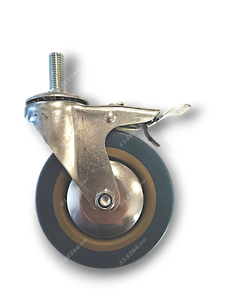 Колесо бытовое поворотное с болтом, тормозом М12 D100 специальная резина